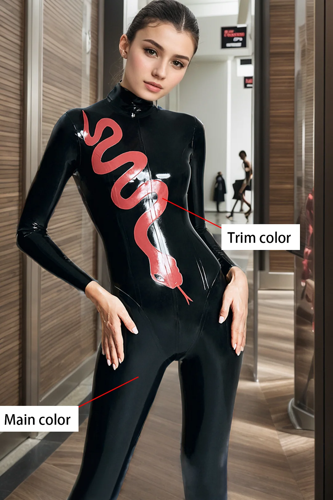 Women Latex Catsuits Femme Fatale Red Snake